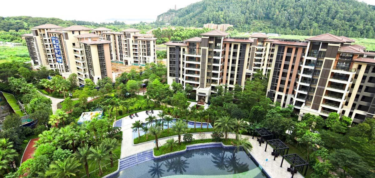 The building elevation attuned to the key note of modern costal construction style, supplemented with corresponding landscape-themed decoration, such as the walls, handrails, landscape walls, pavilion, and statues within the landscape, which can bring up a harmonious large space. In terms of green landscape, Galaxy Shanhai Bay has created a unique living environment in modern costal construction style, and balanced composition with simplicity and dynamic magnificence.