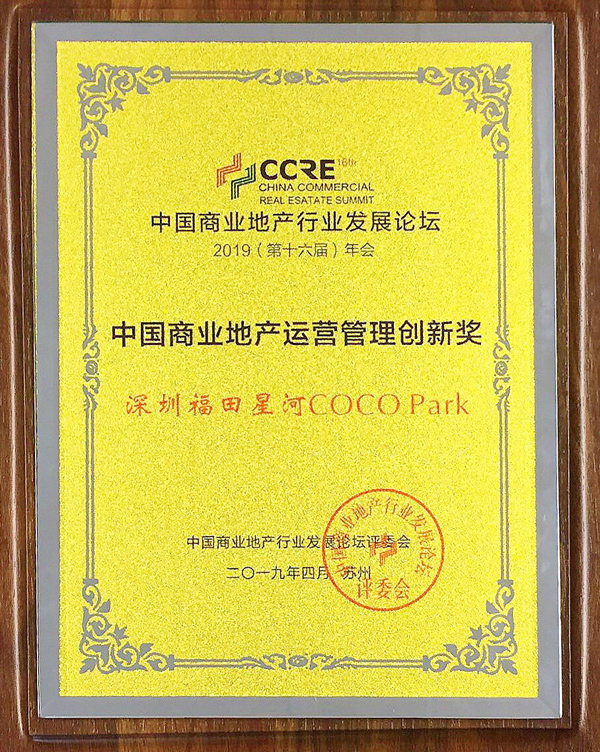 - Shenzhen futian Galaxy COCO Park won "China commercial real estate operation and management innovation award" 2019.05.14
